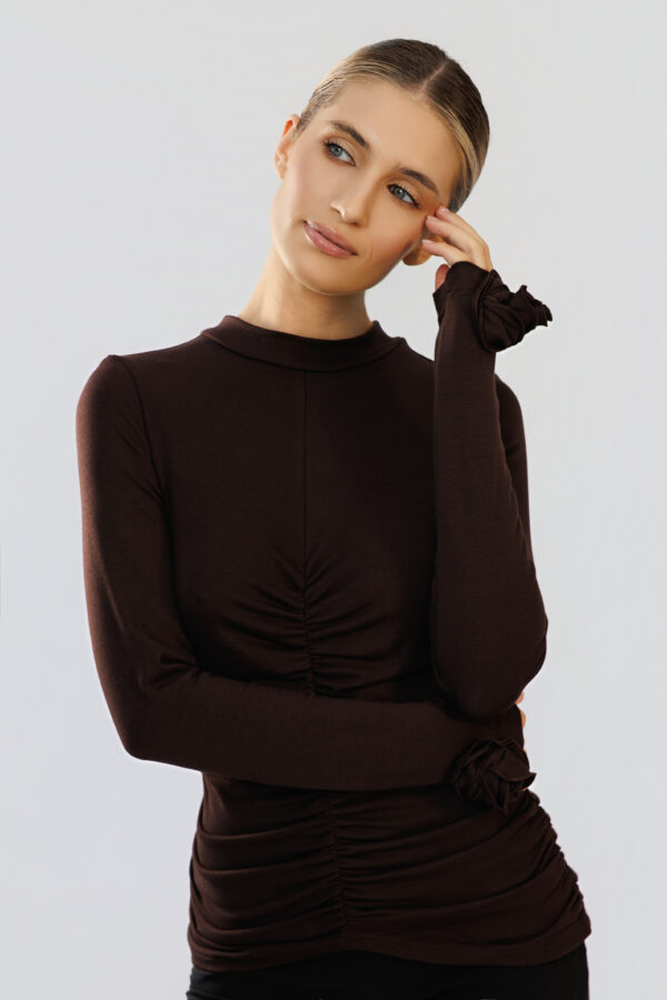 Bluzka Porto to model z długim rękawem,ozdobionym ręcznie wykonanym kwiatem.
