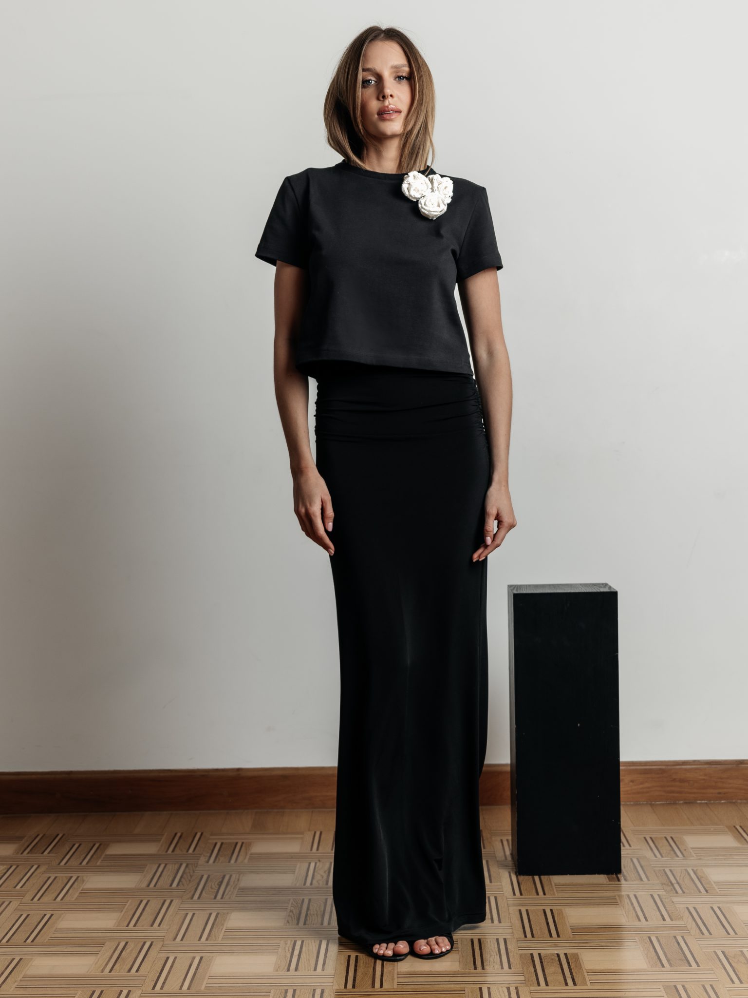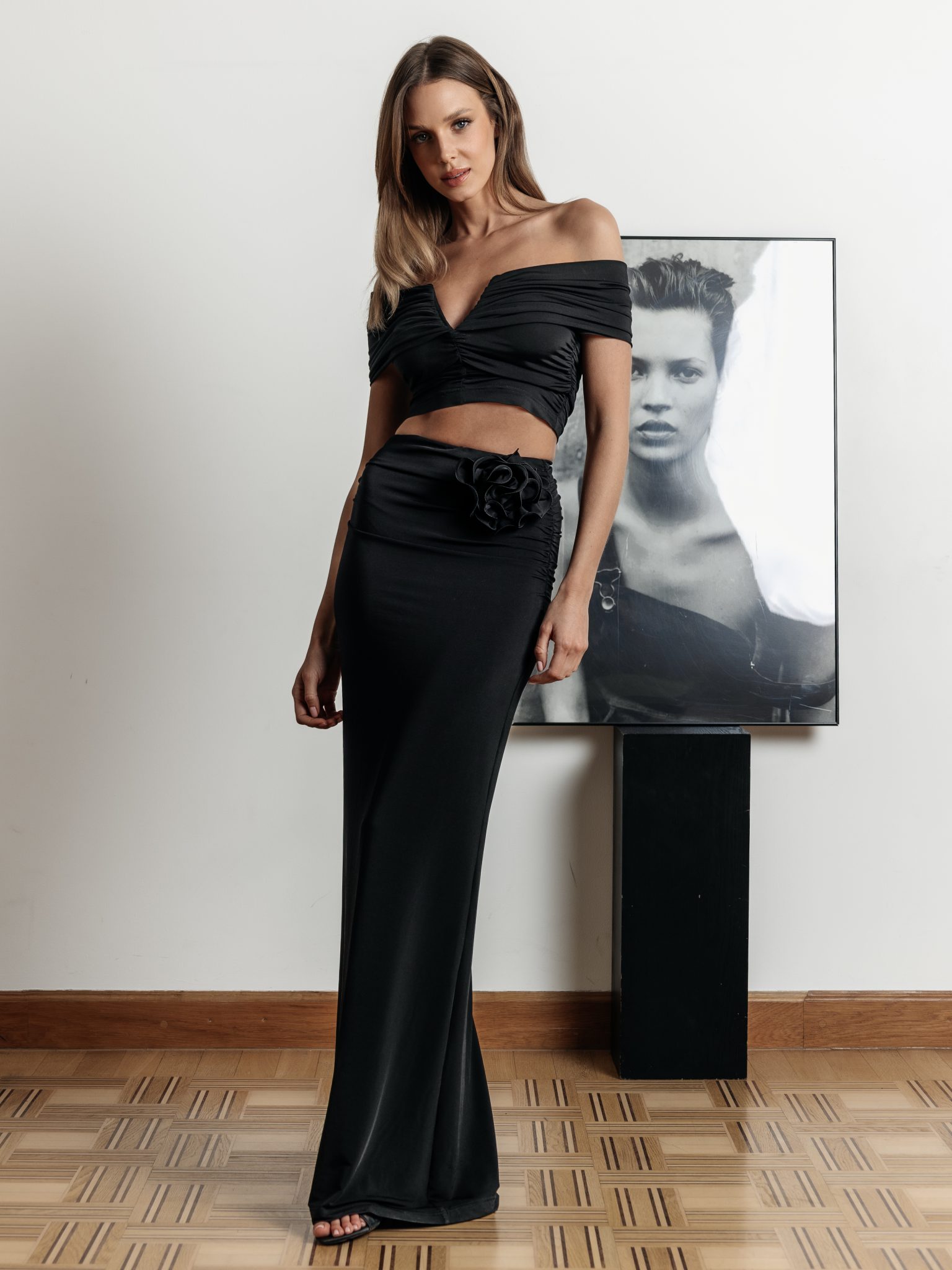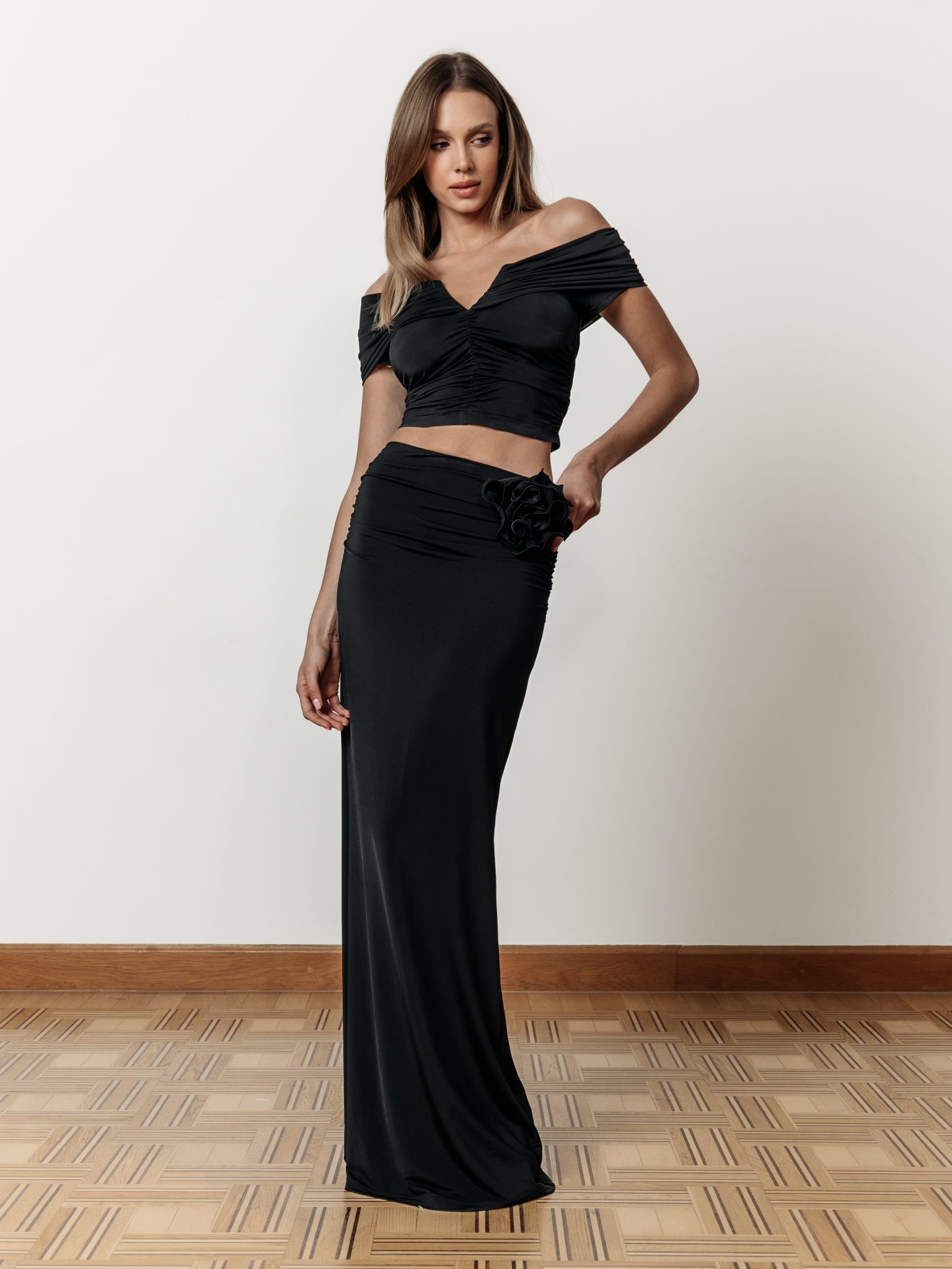 Erica to wyjątkowo wygodna spódnica wykonana z miękkiej i delikatnej dzianiny. Marszczenia na biodrach podkreślają figurę jak również ukryją ewentualne jej mankamenty. Elementem ozdobnym jest ręcznie ręcznie robiony kwiat, który możesz przypiąć w dowolnym miejscu. Pięknie wygląda również przy topie Erica. W połączeniu z topem Erica stworzy idealny outfit na imprezę. Jeśli potrzebujesz stylówki mniej oficjalnej proponuję połączenie z t-shirtem Nova.