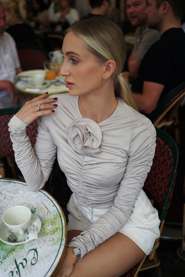 Kwiat można odpiąć i przyczepić w dowolnym miejscu.Bluzka idealnie pasuje do spodenek Kylie, Khloe czy też jeansów.