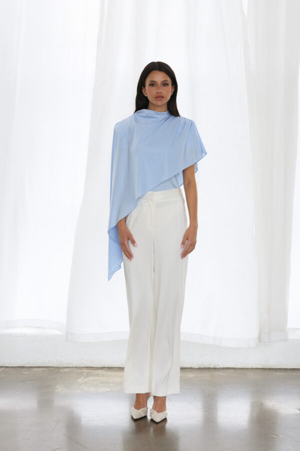 Nowoczesna, asymetryczna bluzka ZAHRA to propozycja dla kobiet, które lubią wyróżniać się subtelną formą i niebanalnym krojem.