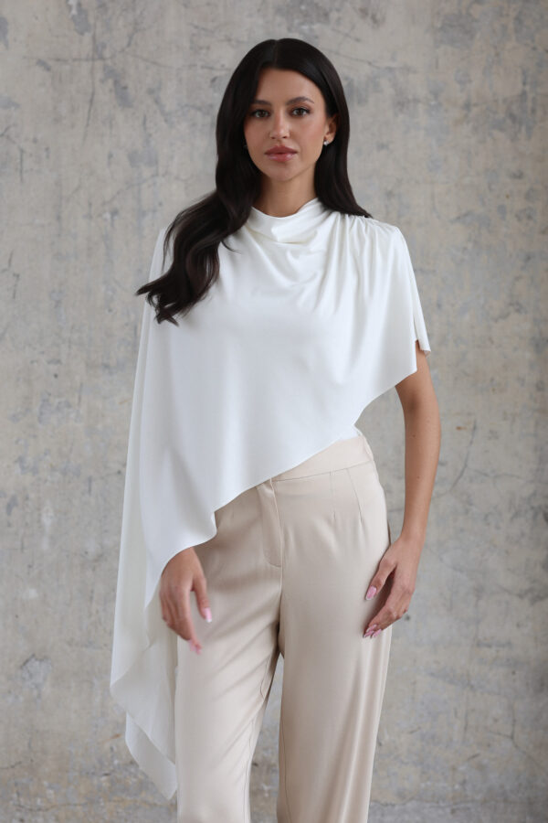 Nowoczesna, asymetryczna bluzka ZAHRA  to propozycja dla kobiet, które lubią wyróżniać się subtelną formą i niebanalnym krojem.