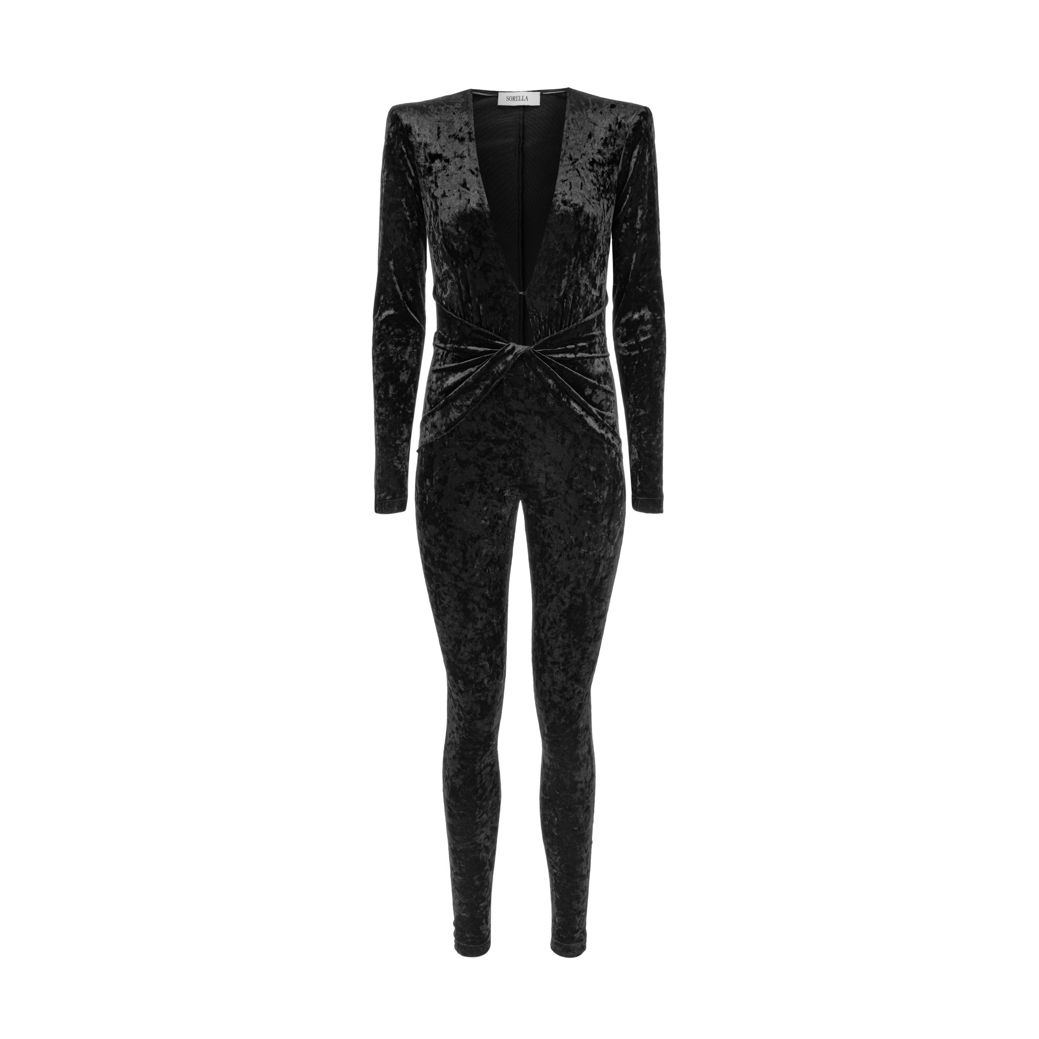 Kombinezon welwetowy AIDA to model, który zdecydowanie będzie zwracać na siebie uwagę. Doskonale podkreśla atuty kobiecej sylwetki. Wycięcie na dekolcie przepięknie eksponuje biust, a poduszki podkreślają ramiona.