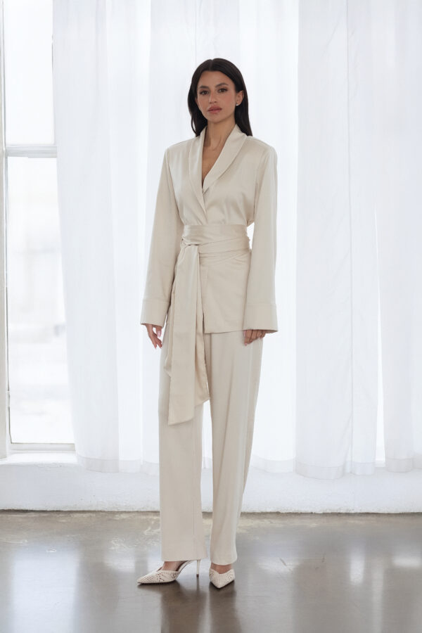 Stylowy beżowy komplet damski FATIMA to synonim nowoczesnej elegancji i ponadczasowego stylu.