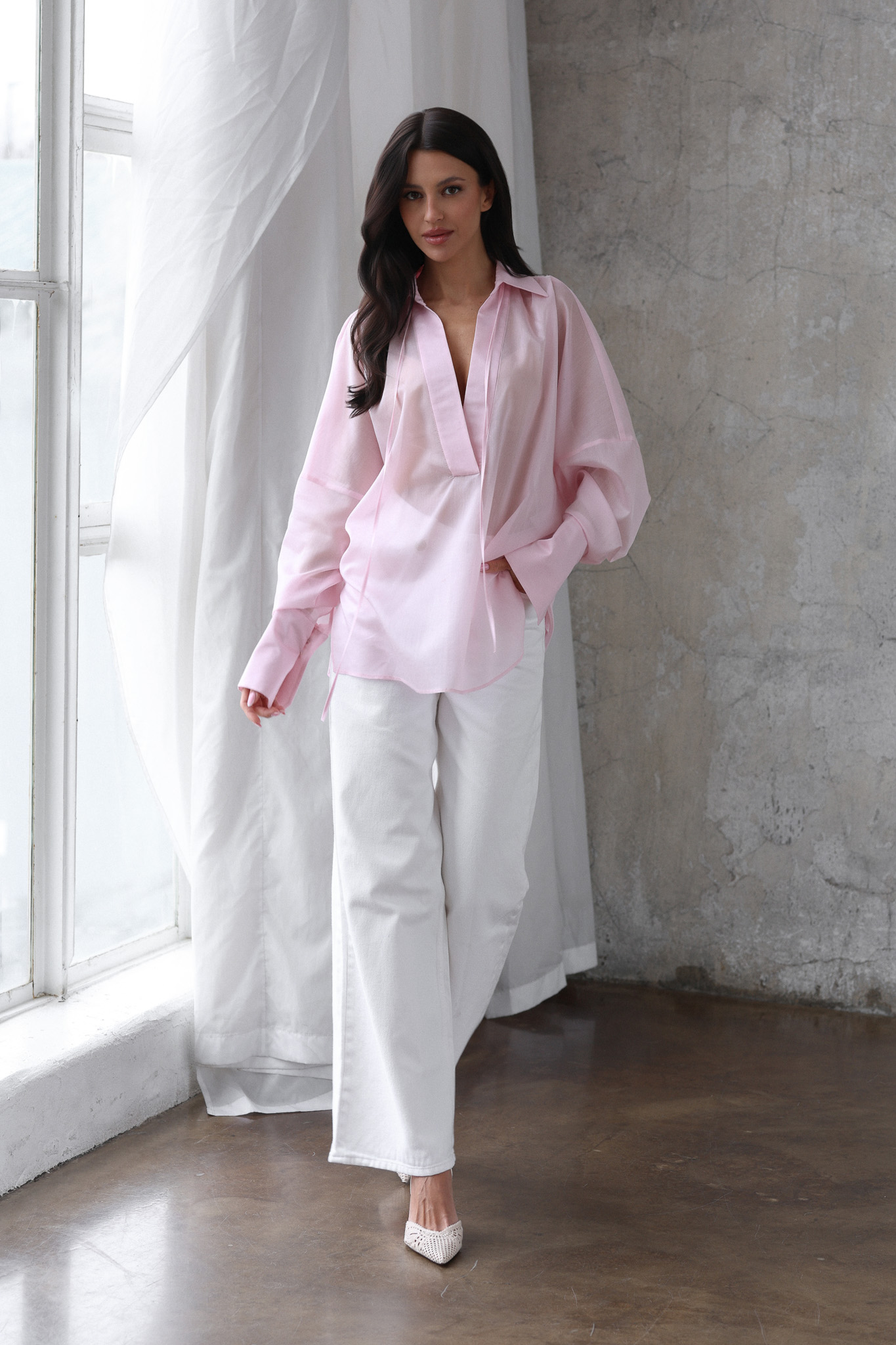 Zjawiskowa koszula FARIDA w przepięknym różowym kolorze to propozycja dla kobiet, które cenią nowoczesną elegancję i lekkość formy.