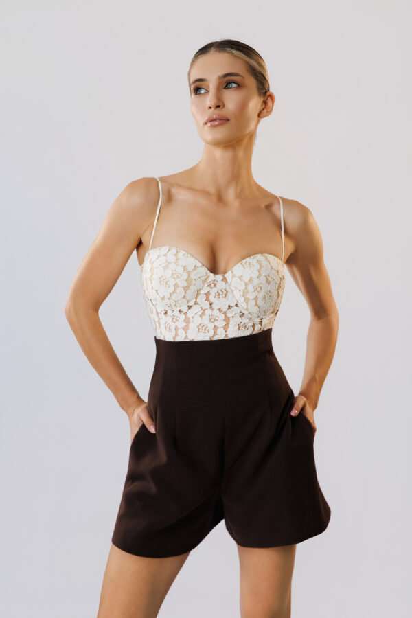 Krótkie szorty o wysokim stanie , które idealnie podkreślają talię.