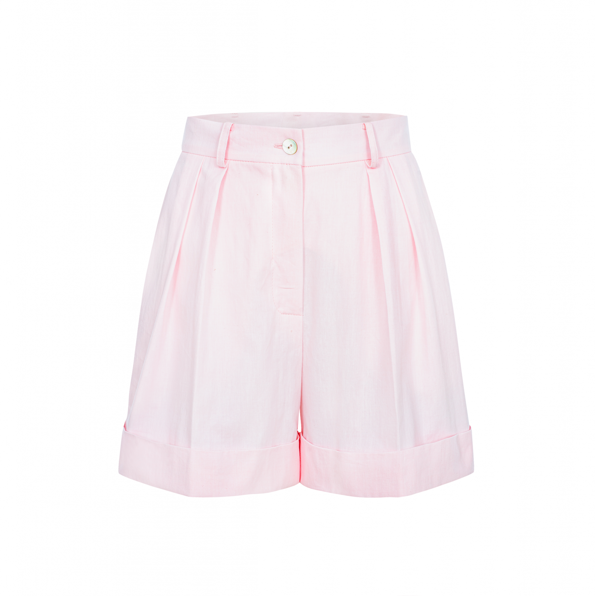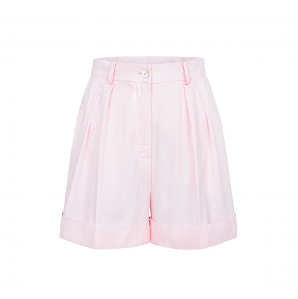 Spodenki Milano o klasycznej formie wykonane ze 100% bawełny w kolorze różowym. Zapinane na guzik. Połącz je z koszulą Milano bądź t-shirt Nova i stwórz miejsko-wakacyjny look.