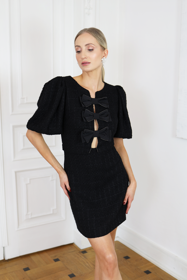 Sukienka PALMIRA to niezwykle elegancka propozycja na okres świąteczny. Niezwykle ciekawa forma – bufiaste, potężne rękawy i delikatne kokardki na dekolcie powodują, że ta romantyczna sukienka zrobi furorę na Twoim spotkaniu świątecznym.