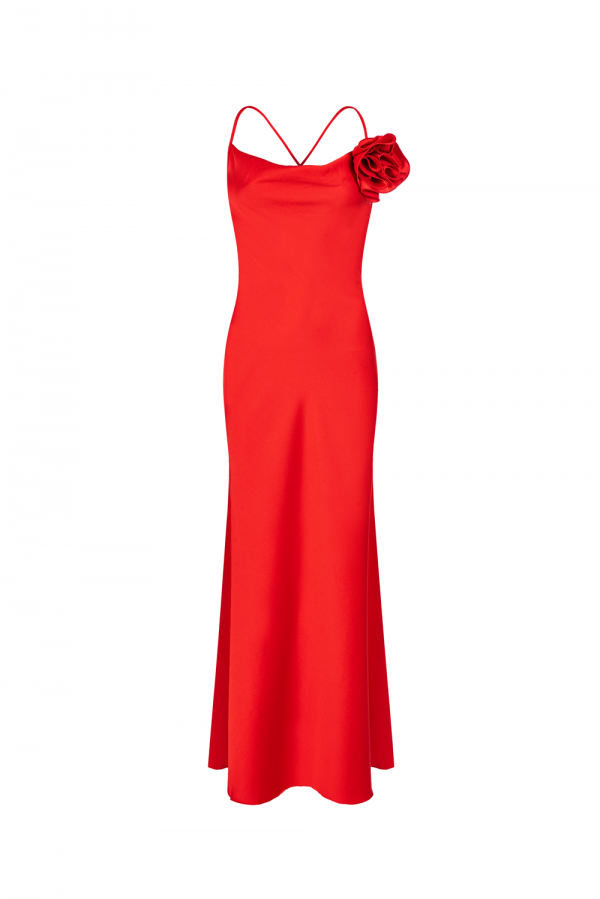 Delikatna sukienka STELLA red to nasza propozycja z kolekcji AW23/24. Długa, lejąca się sukienka z charakterystycznym dla naszej marki kwiatem to recepta na niepowtarzalny i oryginalny look. STELLA red to model, który perfekcyjnie podkreśla sylwetkę i ją modeluje.